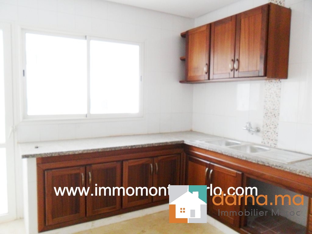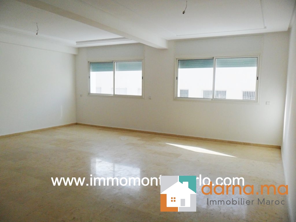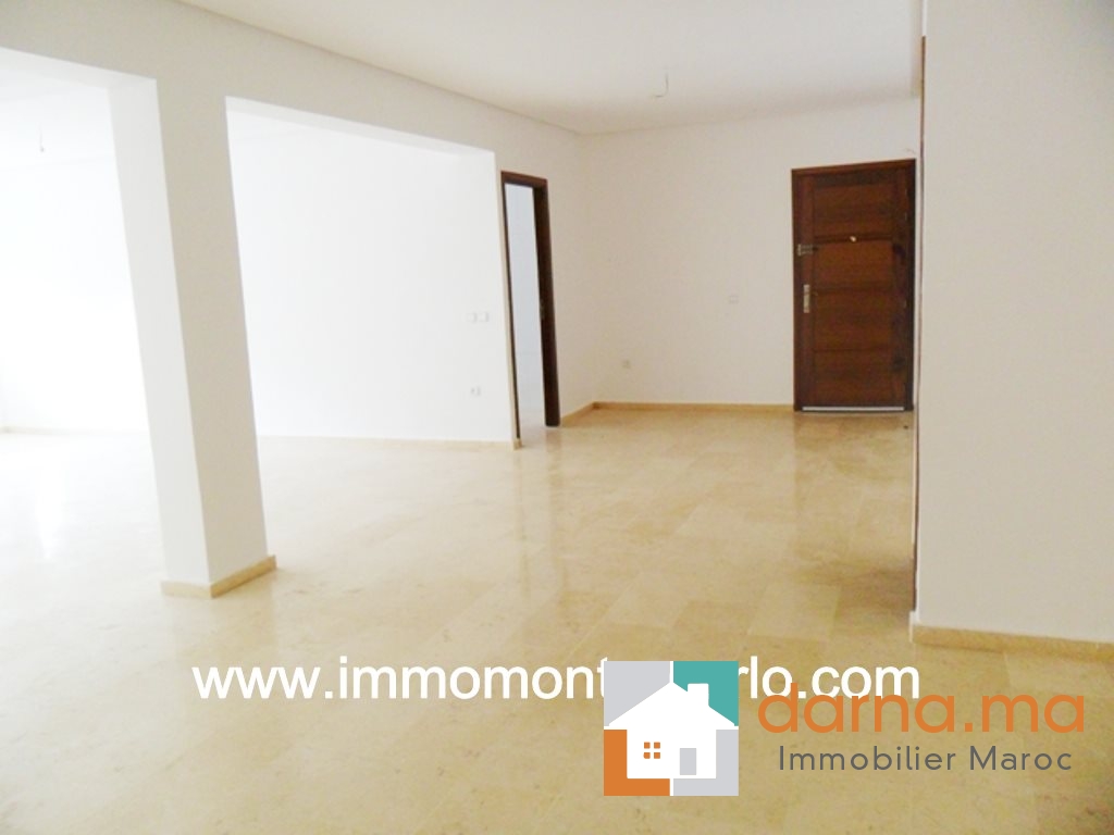 Appartement neuf à louer à jnaneSouissi Rabat, composé de double salon, 3 chambres, 2 salles de bain, cuisine,  buanderie,  séjour,  place au garage,  Box