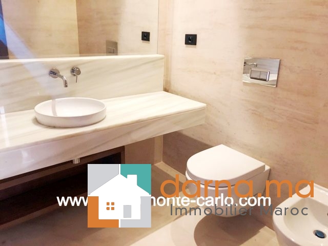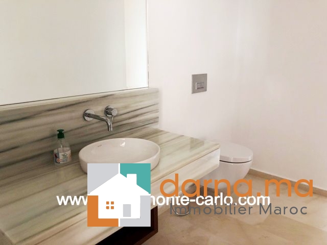 A louer à Rabat Souissi appartement de luxe terrasse sans vis-à-vis, beaux volumes aux grandes baies vitrées sans aucun vis à vis et superbe vue sur   le jardin, dans une construction haut de gamme, bénéficiant de prestations hauts de gamme, vue sur l’orangerie et bien structuré autour d’espaces de vie de qualité exceptionnelle et réalisés avec des matériaux prestigieux dans une résidence sécurisé avec système de surveillance et gardiennage.  Climatisation réversible dans toutes les pièces et 2 places au garage, situé au 3ème étage dans un immeuble avec ascenseur. Se compose de : grande réception avec salle d’eau des invités et grande terrasse, chambre parentale avec dressing, salle de bain et terrasse, 2 chambres, 2ème salle de bain, cuisine équipée,… Pour plus d’informations ou visite n’hésitez pas de contacter notre agence immobilière Immo Monte-Carlo au N° de tél: +212661464037/ +212661212547ou Tél/Fax: +212537755043 ou par E-mail : immomontecarlo@Cette adresse e-mail est protégée contre les robots spammeurs. Vous devez activer le JavaScript pour la visualiser. ou visitez notre site www.immomonte-carlo.com ou  rendez-vous à rue DayetAoua, Imm 2, Apt 3,  Agdal RABAT MAROC