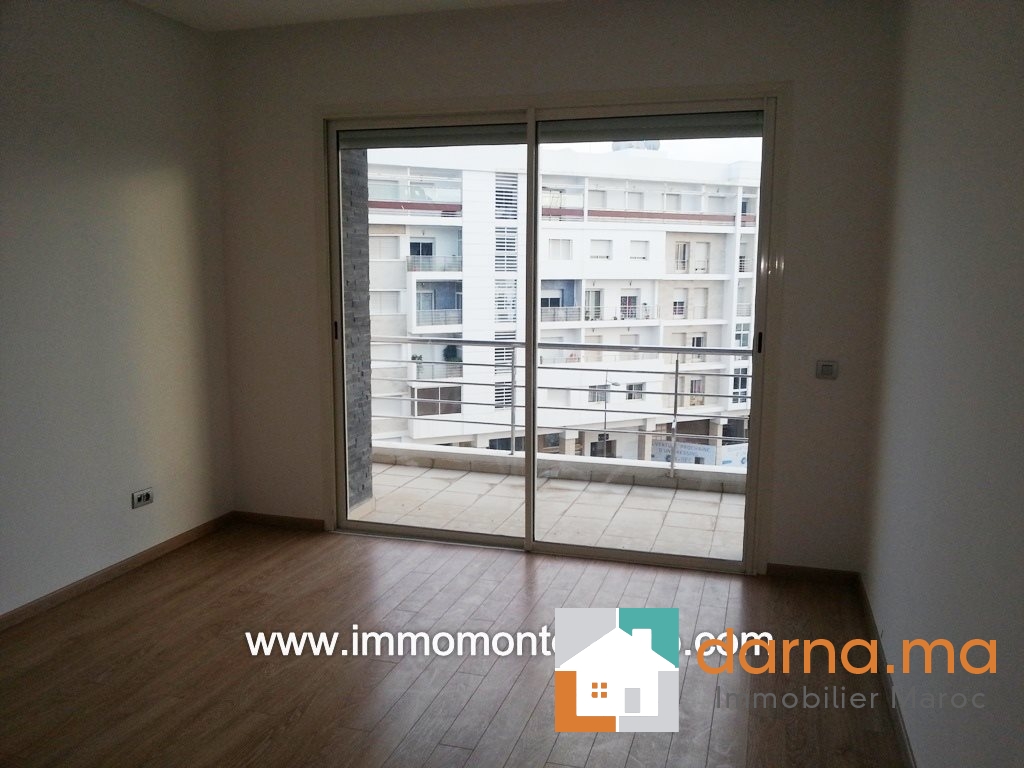 A louer à Prestigia Hay Riad appartement de haut standing et neuf. Jamais habité, 3ème étage, double exposition dont plein sud et sans vis-à-vis. 2 ascenseurs, place de parking couverte dans garage dans une résidence sécurisée 24H/24. Il se compose de 3 chambres, 2 salles de bain, grande réception avec terrasse, cuisine équipée et buanderie,