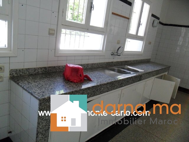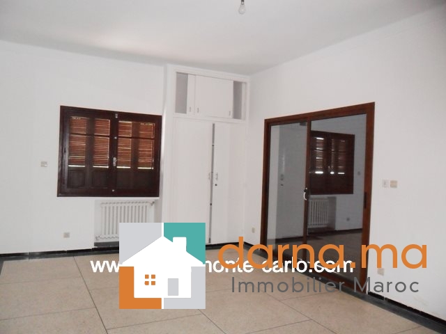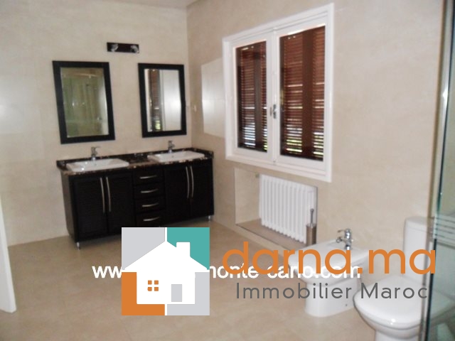 A louer villa avec chauffage central au quartier Souissi Rabat,  ouvrant sur jardin arboré avec fruitiers (orangers, mandariniers, citronniers), très bien située  en plein cœur d'un quartier résidentiel. Calme, ensoleillée et bien sécurisée,   elle se compose d’une belle réception donnant sur une magnifique terrasse avec vue sur la piscine et le jardin: double salons, cheminée, séjour, terrasse, 5chambres dont une chambre parentale avec salle de bain et dressing, bureau, 3 salles de bain, salle d'eau,  cuisine équipée, buanderie,  grand garage, débarras,chambre de service, pièce de rangement,