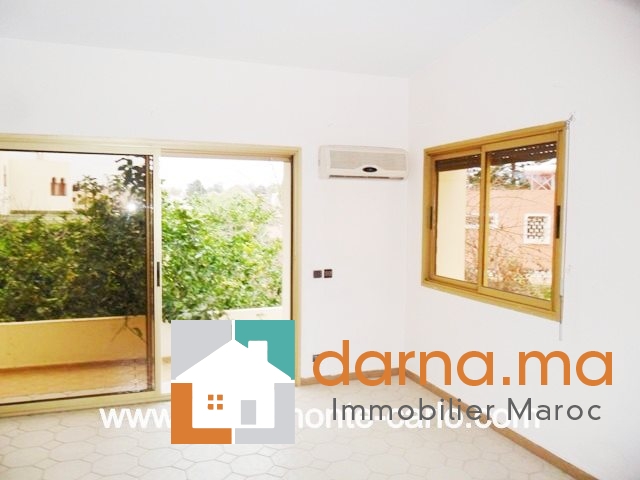 Location villa à Hay Riad Rabat, la villa est équipée de climatisation centrale et chauffage, située dans un endroit calme et sécurisé 24/24, construite sur deux niveaux et composée d'un vaste jardin avec puit et bien entretenu, garage pour deux voitures, jolie réception avec terrasse qui donne sur le jardin, séjour, bureau, salle d’eau des invités, chambre parental avec dressing et salle de bain, 3chambres avec des placards et 2 salles de bain, terrasses et balcons, cuisine bien aménagée, grande cour, dépendance extérieur et studio pour le gardien.
