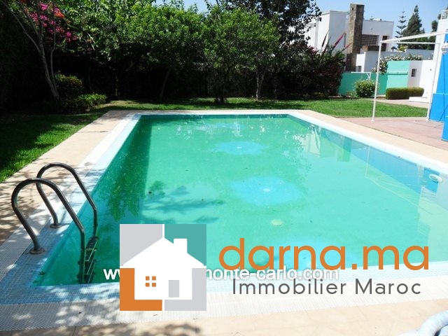 Villa à louer avec piscine et chauffage à Rabat hay riad, climatisation réversible, villa entourée d’un beau jardin avec piscine et puit, composée de triple salons avec deux coins cheminés, bureau, WC des invités, séjour, 6chambres, 5salles de bain, dressing, placards, terrasses, balcons, une cuisine aménagée et équipée , buanderie, logement de personnel