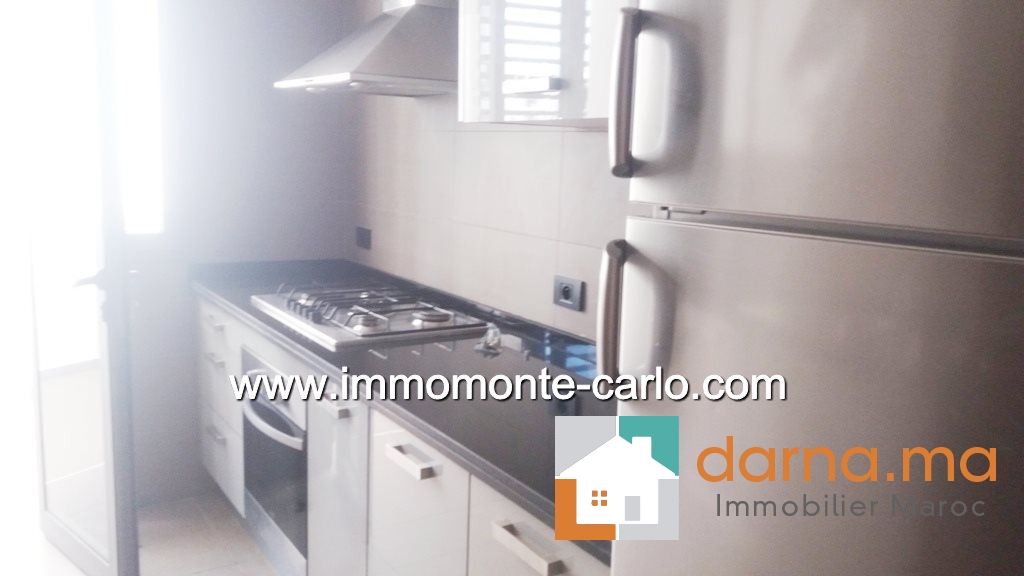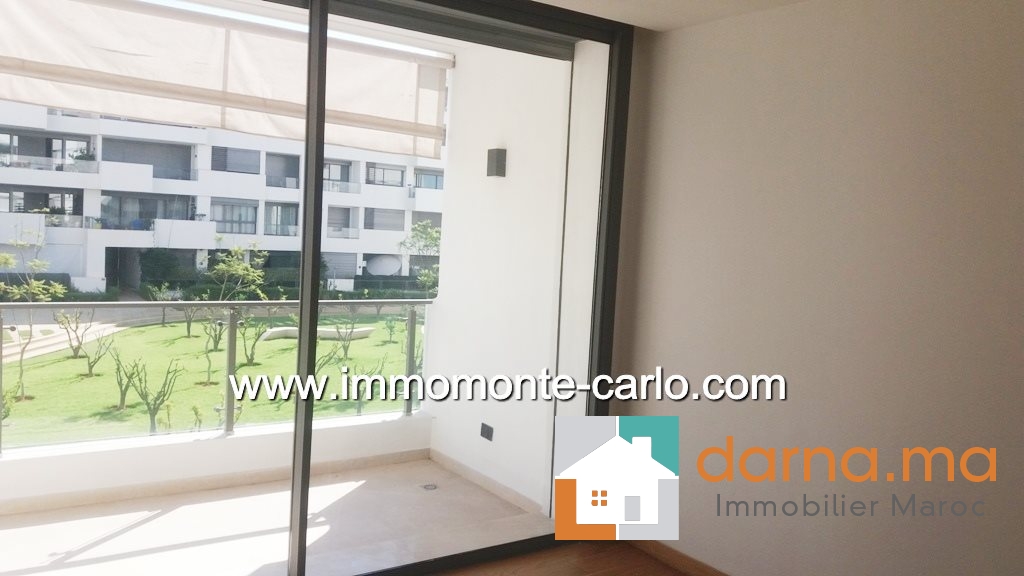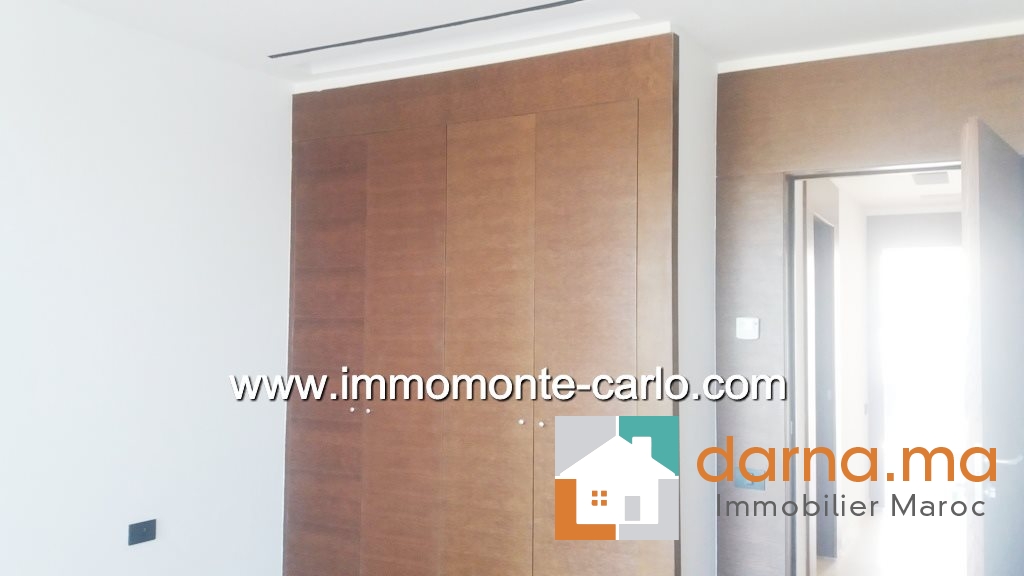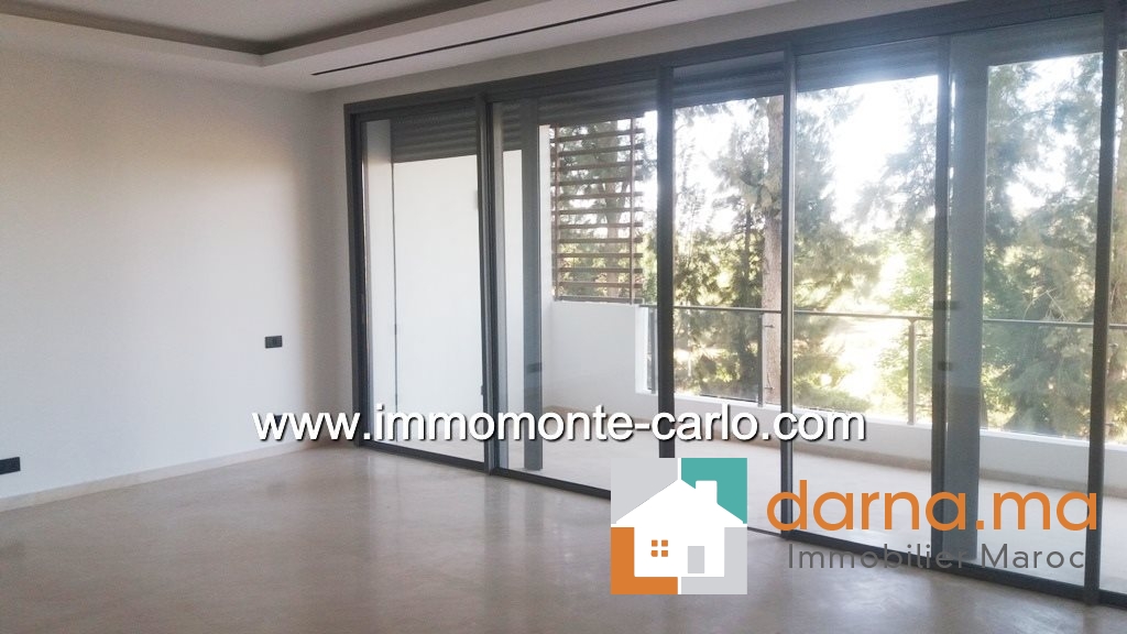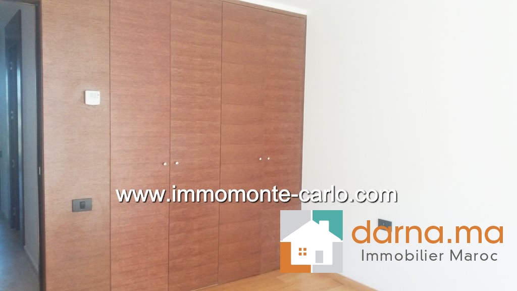 Location appartement de haut standing avec grande terrasse aux orangeraies de Souissi, dans une résidence fermée et sécurisée, avec ascenseur et composé de : une grande réception lumineuse ensoleillé spacieux composée de double salon,salle d’eau des invités, chambre parentale avec une salle de bainet un dressing, une chambre enfants, une salle de bain, cuisine équipée et buanderie, et une place au garage.