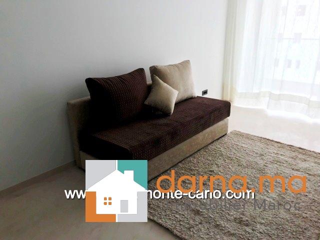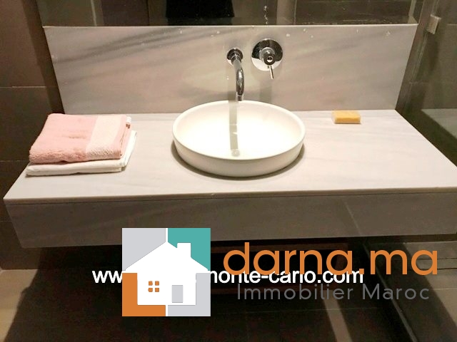 Location appartement de standing meublé au haut Agdal Rabat appartement ensoleillée entièrement et totalement meublé avec goût style européen dans une résidence de très haut standing avec ascenseurs et garage, très bien situé idéalement situé. Proximité dela forêt Hilton, des écoles françaises. Logement moderne et offrant un grand niveau de confortappartement au 6ème étage avec climatisation et chauffage centralisés composé d’un double salon donnant sur une grande terrasse, une cuisine équipée, salle d’eau d’invité, 2chambres dont une chambre parentale avec salle de bain et dressing, deuxième salle de bain,