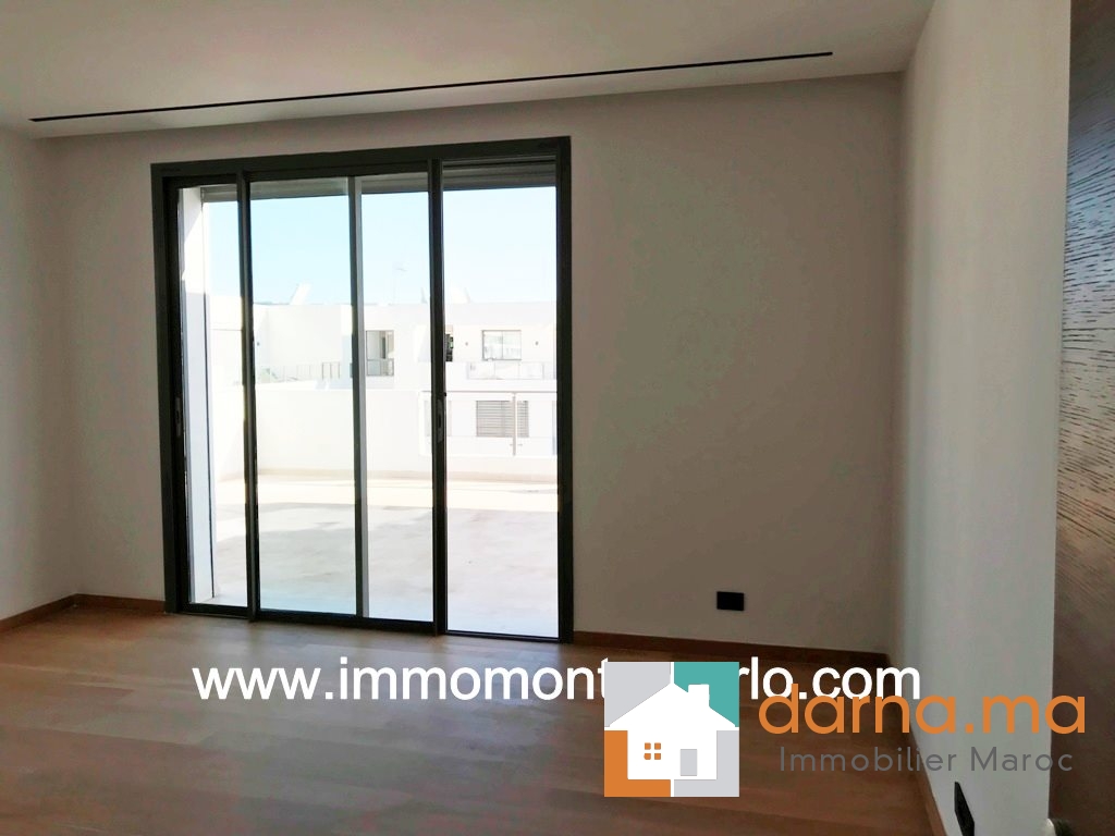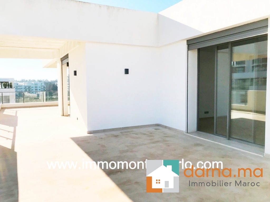 location appartement de haut standing avec grande terrasse aux orangeraies de Souissi, le seul appartement à l’étage,d’une superficie de 350 m² dont 120m² de terrasse sans vis-à-vis situé au dernier étage avec ascenseur dans une résidence fermée et sécurisée,