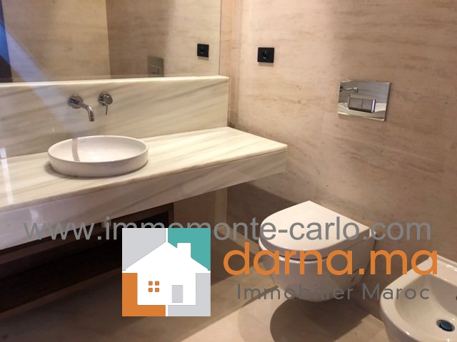 A louer à Rabat Souissi appartement de luxe terrasse sans vis-à-vis, beaux volumes aux grandes baies vitrées sans aucun vis à vis et superbe vue sur le jardin, dans une construction haut de gamme, bénéficiant de prestations hauts de gamme, vue sur l’orangerie et bien structuré autour d’espaces de vie de qualité exceptionnelle et réalisés avec des matériaux prestigieux dans une résidence sécurisé avec système de surveillance et gardiennage. Climatisation réversible dans toutes les pièces et 2 places au garage, situé au 3ème étage dans un immeuble avec ascenseur. Se compose de : grande réception avec salle d’eau des invités et grande terrasse, chambre parentale avec dressing, salle de bain et terrasse, 2 chambres, 2ème salle de bain, cuisine équipée,… Pour plus d’informations ou visite n’hésitez pas de contacter notre agence immobilière Immo Monte-Carlo au N° de tél: +212661464037/ +212661212547ou Tél/Fax: +212537755043 ou par E-mail : immomontecarlo@Cette adresse e-mail est protégée contre les robots spammeurs. Vous devez activer le JavaScript pour la visualiser. ou visitez notre site www.immomonte-carlo.com ou rendez-vous au 15,Av. Al Abtal N°4 , Agdal RABAT MAROC.