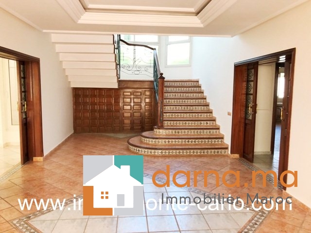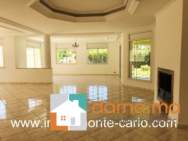 À louer villa standing  lumineuse et à Rabat au quartier Souissi.  Dans un environnement privilégié, villa avec un très joli  jardin bien entretenu fleuri, idéalement située dans un quartier résidentiel,  bénéficiant de prestations hauts de gamme, beaux volumes aux grandes baies vitrées et superbe vue sur   le jardin, une grande terrasse , , climatisations réversibles dans toute la maison, grand garage automatique, panneaux solaires pour l’eau chaud, villa composée au :