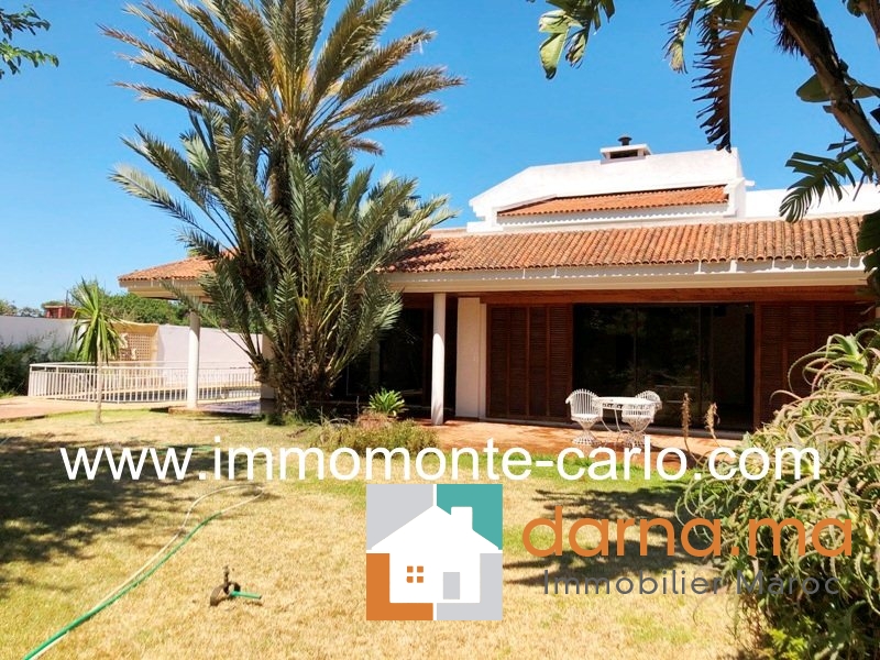 À louer Rabat villa située dans une rue calme à Souissi,  Cette propriété est idéale pour ceux qui cherchent la proximité,  qui dispose du chauffage central et de la piscine et nombreuses ouvertures sur une belle grande terrasse donnant  le jardin, la  piscine  exposée plein sud, jardin avec puit, grand garage,  comprenant :